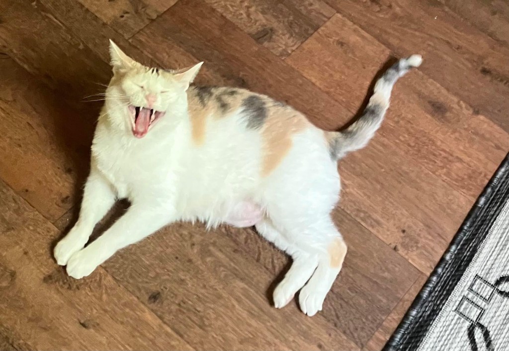 Sable’s nicknames were sweet girl and honeybee. I also referred to her in conversation sometimes as a salty diva because she was very much the Primadonna. She would be seeking attention one minute, and then I would walk by her a few minutes later and she would bite my foot just because she was annoyed at my presence. She never really liked toys and knew how to remove a collar. She was absolutely food crazy, and if she really liked you she would let you hold one of her paws while she took a nap. An absolute lap cat, she did not love being held but would refuse to get off of you no matter what you needed to do, or how quickly you needed to do it.