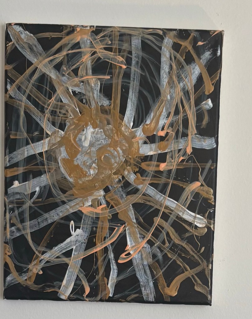 At this point I mostly work with metallic, satin, and gloss finish paints for my abstract art. I love the reflectivity.